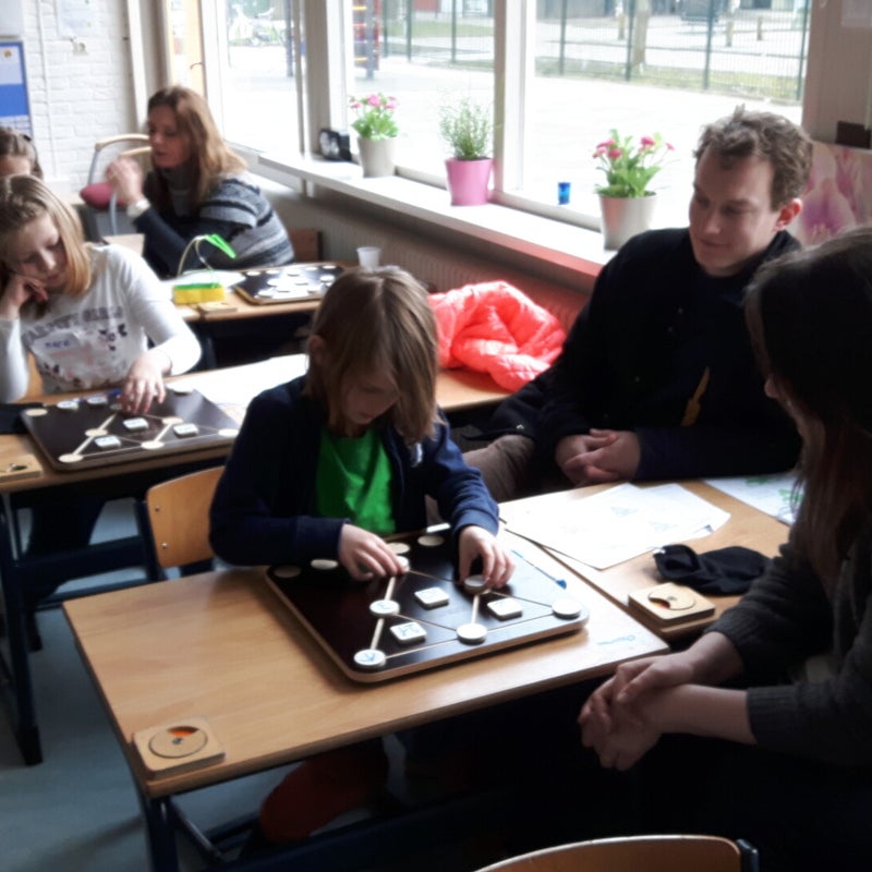 Rolf heeft het spel ook gespeeld met de kleuters. Hij legde het spel rustig uit en gaf de kinderen nieuwe opgaven. De kinderen vonden het interessant om van de maker van het spel de opgaven te krijgen. Het contact met de kleuters was goed. Opvallend was dat de kinderen die interesse hebben in rekenen het spel heel leuk vonden om te spelen. Door het spel wordt er flink geappelleerd aan het denkniveau van de kinderen.